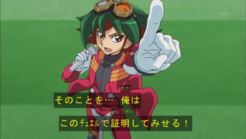 這裏似是回應當年舞網市的選手宣言。當年遊矢有點不習慣大場面,結果沒怎提到他的理念。然而今回他經歷了不少,知道了城市的黑暗,同時也從傑克VS賽爾蓋的決鬥中明白傑克的決鬥也是有其訊息,他已經跟當年不諳世事,只懂追著父親的背影的他不同了。