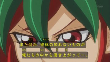 可是今回遊矢似乎非常恐懼自身被不知何物吞噬的一刻,但遊斗明顯地沒這麼介意,難道謎之霸王出現後,遊矢就會消失之類……?