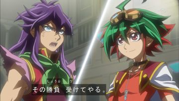 今回一開場就見到勝鬨對遊矢充滿仇恨,雖然說白了只是不甘敗給遊矢,但遊矢對於當日用暴力戰勝勝鬨的一戰亦有不甘之處。