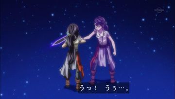 看瑠璃與沙耶香的一幕,果然黑咲一直以來也是決鬥笨蛋啊,除了決鬥以外的事情也不太理解。可是與遊矢們的交流令他理解到卡片不只是顯示自身強度的道具,而是同伴的羈絆,黑咲也有不少成長啊。