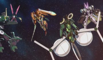 今回各人也開了一次覺醒模式,然後機體就幾乎損毀了,BLUE ONE簡直是成了碎片,這種情節活像是為了出新機體而舖路(笑)。