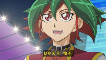 結果到最後柚子才有一句對白,本來很不滿,但聽到柚子有點哽咽的聲音對遊矢說「我知道你一定可以為大家帶來歡樂的」,加上後來遊矢笑著對柚子說「歡迎回來」……我的不滿都消失了。