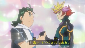 一直非常膽小,但比常人熱血的島君,為了保護VRAINS而出發,且手中還拿著PLAYMAKER的電子族怪獸……