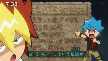 從第一話開頭,他作了一個夢,夢見自己坐著機械人,得到小朋友的支持,一直向前衝。在本集中間就發現,決鬥的一切由公司管理,不能改造決鬥盤(這算是正常的,誰也能打開決鬥盤怎辦啊),亦不能在公司設定的地方以外交換卡片。即是,作為決鬥者,要是想要決鬥的話就得接受卡片公司的一切約束。的確,是很不自由的決鬥啊。