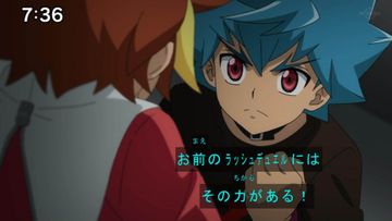 尤其是遊我,今回一下子就敗掉,害我笑了。然而他的那句「即使被葛瓦發現也好,再安裝一次就好了」、「無論任何時候也有反敗為勝的機會」,令我很敬佩。最初一開始讓路克上決鬥之路也是,以小學生而言,普通的話應該會自己走上前,他卻讓路給路克(而路克即答,我也笑了),實在值得讚賞。