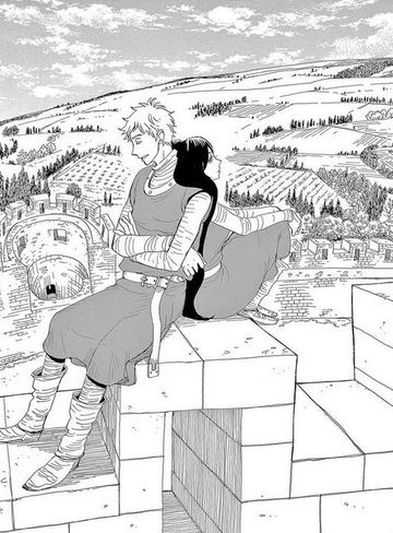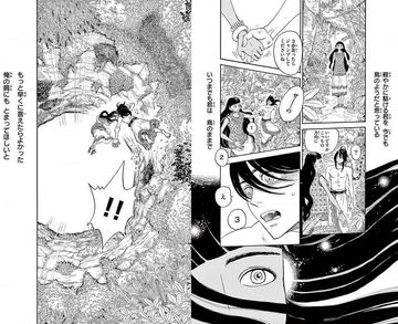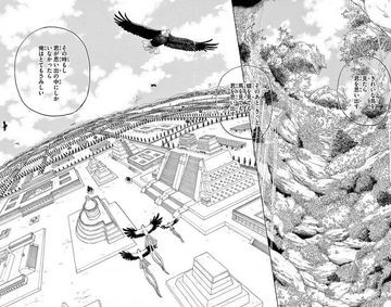 這裏就見到了作者的背景描寫力了。背景裏出現超多種動物的壯大畫面!看的我也目瞪口呆,這就是這世界的樣子嗎……畫的非常活靈活現,就像在山頂裏看著地面,感受到風與流動的空氣,那種置身現場的感覺,世界就像在眼前啊。